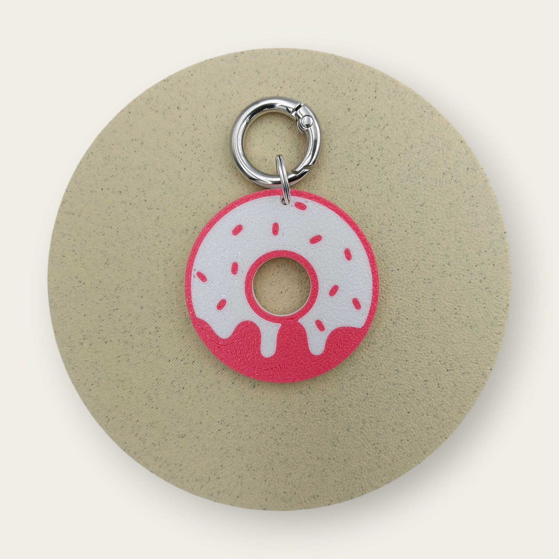 Gogoașă cu glazură și drip pe zgardă. Alb cu roz.